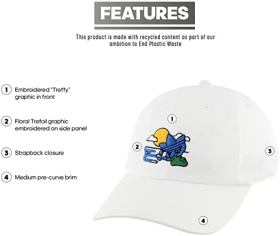 Embroidered "Treffy" graphic in front Medium pre-curve brim Floral Trefoil graphic embroidered on side panel Strapback closure