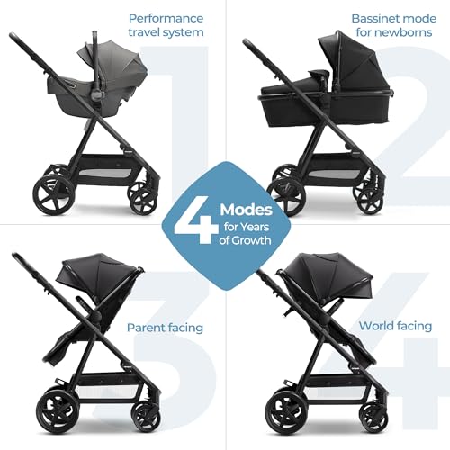 Room to Grow & One Hand Recline - Meteor2 includes car seat adapter, compatible with infant car seat. With a range of recline options, this infant stroller will go from bassinet to upright with one hand. Offering your newborn the security they need from the start. Open Up to the World - The reversible seat on these 2 in 1 strollers for newborns allows you to manage their visual stimuli. Provide reassurance with the parent-facing, or let them take it all in with eyes wide open. As baby develops the Meteor can match their growth, along with an adjustable footrest for added comfort. Smooth Strolling - The omnidirectional luxury stroller wheels allow for effortless 360-degree maneuvering. Paired with advanced suspension for exceptional cushioning. The newborn stroller even has a height-adjustable faux leather stroller handle that is designed to suit you For On-the-Go Families - This stroller bassinet combo features a compact design with extra storage capacity. Stash everything you need under the seat for all-day outings. When it’s time to go, it folds in one step and stands independently, for easy loading and unloading Shielded & Safe - When you're invited out on a bright sunny day, accept the invitation. This stroller for newborn children has a zip-out UPF 50+ canopy that provides maximum coverage. Ventilation panels on the side of these toddler strollers provide optimal airflow and natural light. You'll also receive a cup holder, foot cover, rain cover, and car seat adapter