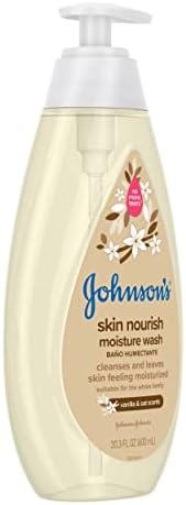 20.3-fluid ounces of Johnson's Skin Nourish Moisture Baby Body Wash enriched with vanilla & oat scents to gently cleanse baby's delicate skin and hair, leaving your little one's skin feeling touchably soft and smooth Designed to gently cleanse and leave skin feeling moisturized, this baby wash is enriched with 2x more moisturizers* and a gentle vanilla & oat scent. *vs Johnson's Bedtime Wash Made with a tear-free No More Tears formula, this moisture baby bath wash is as gentle on eyes as pure water, made for baby's delicate skin and hair and suitable for kids and adults too Hypoallergenic tested with pediatricians and dermatologists, this nourishing baby skin care wash contains no parabens, phthalates, sulfates or dyes This nourishing baby wash creates a rich lather. To use, wet baby's hair and body with warm water, apply wash with your hand or washcloth, gently lather and rinse #2,752 in Health & Household ( ) #9 in #10 in