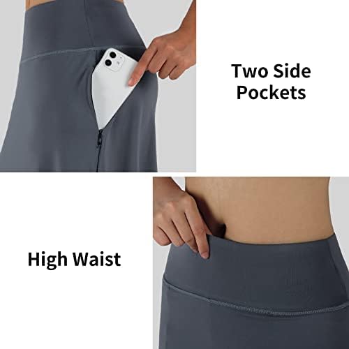ANIVIVO Women Long Knee Length Skirt with Capris Leggings,Skirted Leggings with High Waisted Zipper Pockets