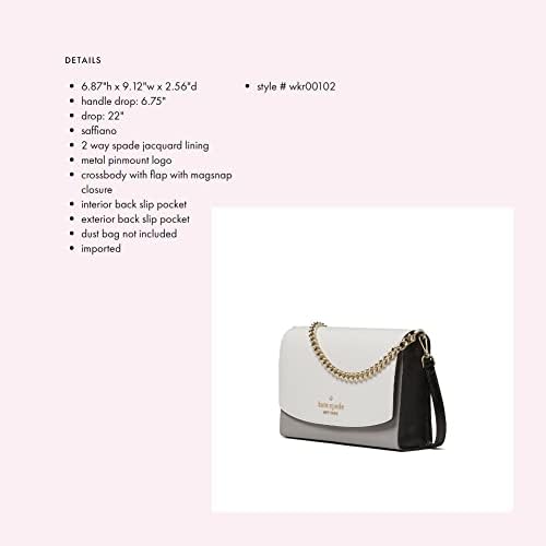 Saffiano leather with magnetic snap flap closure Metal pinmount logo on front flap; exterior slip pocket Interior features two way spade jacquard lining with one slip pocket Use as handbag with chain with 6.5" drop; shoulder bag or crossbody wear with removeable, adjustable strap with drop of approximately 22" Approximate dimensions: 6.87"h x 9.12"w x 2.56"d #34,912 in Clothing, Shoes & Jewelry ( ) #182 in