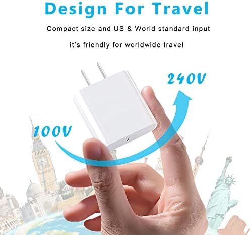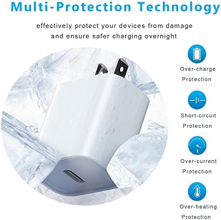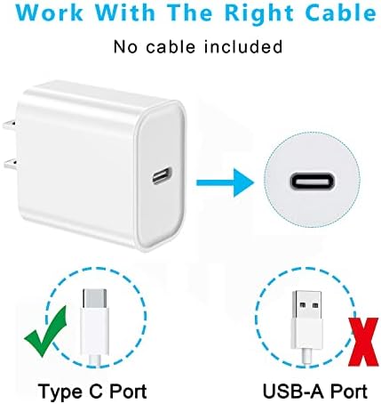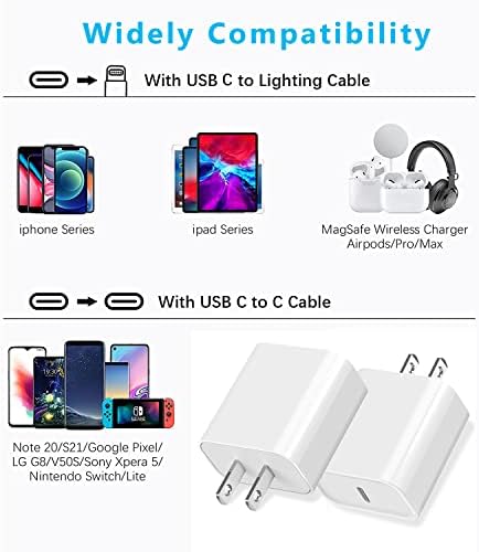 [20W PD New Fast iPhone Charger Block] 2Packs of USB C Wall Charger Adapter Plug Offer Fast Charging Up to 3X Faster Than a 5W Charger. Charge Your iPhone 14 up to 50% Capacity in Just 30 Minutes With the Original Cable. [Compatibility List] This New Fast Charger for iPhone is Designed for iWatch Series 9/8/7/Ultra | iPhone 15/ 15 Plus / 15 Pro / 15 Pro Max / iPhone 14/ 14 Plus / 14 Pro / 14 Pro Max / iPhone 13/ 13 Mini/ 13 Pro/ 13 Pro Max/ iPhone 12/ 12 Mini/ 12 Pro/ 12 Pro Max/11/11 Pro/11 Pro Max/iPhone SE 2020/X/XR/XS/XR/8/8 Plus, iPad, Switch, Pixel 6 Pro, Galaxy S21 and Later Devices. Compatible with any USB C Enabled Device Supporting 20w Fast Charging. [Compact Design] The Compact and Travel-Friendly USB C Fast Charger Block, Also as A Handy Wireless iPhone Charger, Ensures Maximum Portability Wherever You Go. Providing 100-240V Input, iPhone 15 Charger Block companion for many places. [Safe & Reliable] Charger Blocks Packed with A Highly Intelligent Chip. With the Intelligent Chip Inside, the iPhone 15 Charger Block Matches the Current as Your Device Needs Automatically. Over-current, Over-voltage, and Short-circuit Protection Effectively Protect Your Devices from Damage. [Great Choice for Backup] 2 * 20W Power Delivery 3.0 Wall Fast Charger Block. (Lightning Cable Not Included).