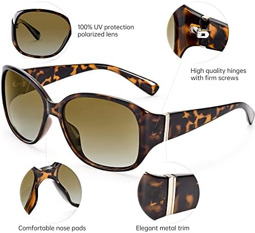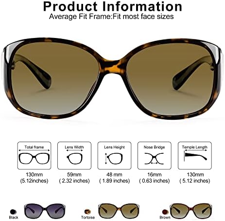 [Two Paips Gifted Packing] 2 pairs women classic style sunglasses with matching pouch. You can keep one pair by yourself and the other as best gift for family or friends. [High-Definition UV400 Tac Polarized Lenses] The retro large lady sun shades with polarized, non-reflective lens give your eyes the great sun protection. [High Level Frame Quality]Injection frame is super light PC material with optical quality hinge which can pass the most strict hinge life testing and compliance with CE standard. You will definitely feel worthwhile after comparing. [Perfect Ourtdoor Decoration]The trendy designer sunglasses with delicate metal trim on the temple give you a casual but classy vibe.Suitable for outdoor activities such as city walk, driving, travelling, sport, shopping. [Product Dimension]Lens Width: 59mm( 2.32 inches) | Lens Height: 48 mm( 1.89 inches) | Temple Length: 130mm( 5.12 inches) | Nose Bridge: 16mm( 0.63 inches) | Total Frame Length:130mm (5.12inches). #23,680 in Clothing, Shoes & Jewelry ( ) #218 in