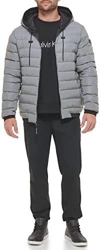 Coat description: These shiny puffer jackets are designed for movement without limits and is water and wind resistant enough to wear as a rain coat or as a windbreaker in cooler months Designer features: The signature Calvin Klein logo is stitched onto the sleeve; sporty knit detailing is featured on the hood and cuffs, and two large side pockets give this quilted jacket added flare and function Function and style: These winter coats for men land just past the waist; thelook good zipped-up or left open and represent the comfortable style you expect in a piece for Calvin Klein Wardrobe options: Calvin Klein jackets for men sport an easy fit and can be worn over a sweater, hoodie, and other fall and winter clothes; and looks great over a pair of jeans, joggers, or mens sweatpants Calvin Klein men: Mens fashion you can count on for simple, comfortable style #188,457 in Clothing, Shoes & Jewelry ( ) #38 in