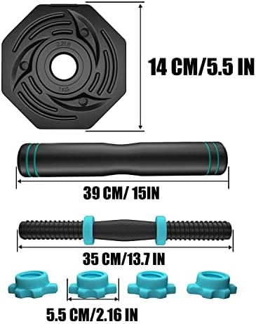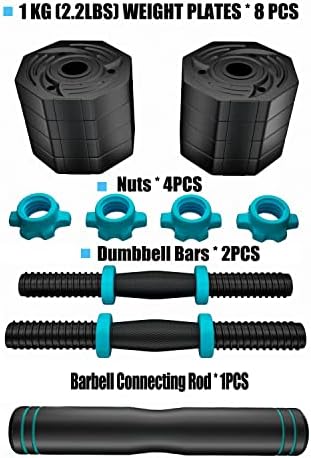 【Anti-slip & Anti-roll Design】:These weight plates have octagonal shape that keeps it from rolling and won't damage the floor. It is easy to install and allows for quick switching between dumbbells and barbells. 【3 in 1 Adjustable Weights】:By placing a different number of weight plates, you are free to choose the weight that suits you. If you install it as a barbell, it can hold up to 20 pounds for a variety of muscle training. 【20LBS Dumbbell Set Includes】: 8 × 2.2 lbs weight plates, 4 × nuts, 2 × dumbbell install bars and 1 × barbell connecting tube.(You can connect 2 dumbbells to 1 barbell through the connecting rod in a short time.) 【Essential Fitness Equipment】: It is safer and more stable than other equipment, and can increase muscle endurance and mass, improve cardiovascular system, and get in shape. Suitable for men/women who want to lift weights at home. 【Best Gift】: It makes an excellent gift for yourself,your family, friends or someone you care about, both for beginner and professional weight trainers.We value the shopping experience of our customers, if you have any dissatisfaction with the product, please contact us by email, we will give you a satisfactory solution.