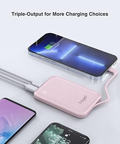Portable Charger with Built in Cable: Perfect portable phone charger built-in cord compatible with your iPhone devices. Just plug into your phone for charging, there's no need to carry any extra cables. Pocket Friendly and Stylish Design: This battery bank charger covers with colorful Stylish Piano Lacquer (Black, white, pink, blue, red, green) for better visual beauty and hand feeling. Lightweight and compact design makes it easier to carry around in your pocket or bags. Three Way To Charge Your Devices: The portable battery charger is equipped with one usb type-c input&output and another usb output, as well as the built-in cord. Triple-output port design allows you to share this portable power bank with your families and friends. Daily Battery Backup: Ultra slim and credit card sized battery pack has a enough capacity of 4500mAh, which is suitable for daily use and short travel as a portable battery backup for your cell phones and other usb compatible smart devices. What's You Get: 1 * 4500mAh Portable Charger, 1 * USB Type-C Charging Cable, Worry-free 12-month warranty and friendly customer service.