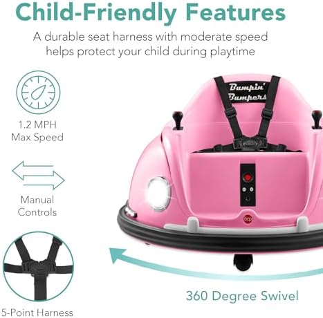 Best Choice Products 6V Electric Kids Ride On Bumpin Bumper Car, 1.5-6 Years Old, Parent Remote Control, 360 Degree Spin, Lights, Sounds - Pink