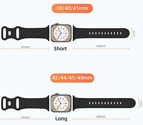【Compatible Models】 Maledan premium sport watch bands compatible for Apple Watch 38mm 40mm 41mm 42mm 44mm 45mm 49mm, iWatch Series 9, Series 8, Series 7, Series 6, Series 5, Series 4, Series 3, Series 2, Series SE & SE1 & Apple Watch Ultra 2/1. Replacement Bands for All iWatch Series Version 【Soft & Smooth Silicone】 Our iWatch Bands are made of great quality silicone, skin-friendly & very comfortable for workdays, workouts and overnight sleep. Waterproof, lightweight & durable strap, a great affordable option for your Apple watch accessories 【Flexible Buckle & Easy Wear】 Stylish integrated sturdy buckle and strap design, with a silicone loop and peg closure. Compared with the traditional metal buckle, this band design for Apple Watch is much more light & convenient. NO MORE skin irritation 【Multi Colors & Free Size】 Various rich & muted colors, same color clasp and band, go great with your outfits and easy change for every occasion. 38mm/40mm/41mm Band for 5.1"-7.1" (130mm-180mm) wrist; 42mm/44mm/45mm/49mm Band for 5.9" - 7.9" (150mm-200mm) wrist 【Must Buy 38/40/41/42/44/45/49mm Bands Compatible with Apple Watch】 6-pack fashionable & high-quality colorful strap combinations for women men, great versatile bands pack for your iWatch accessories. We highly value your experience and focus on creation. One Year Guarantee & 24/7 Friendly Support from Professional Maledan Team are offered for you #146 in Cell Phones & Accessories ( ) #8 in
