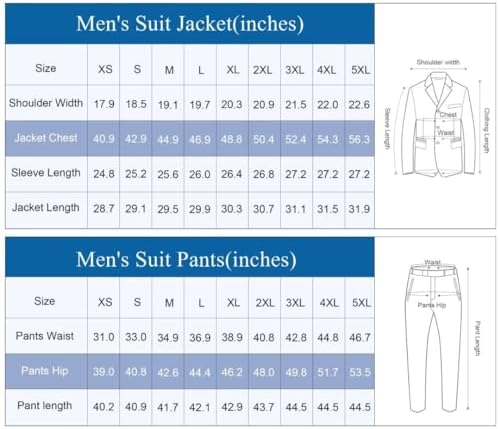 Mens Suit Feature:Suit Jacket:Notch Lapel,Two Button Closure,Single Breasted;Suit Pants:Flat Front,Reagular/Slim Fit. Note: Package Include: Dress Blazer*1+Dress Pants*1+Tie*1 Material: We selecte high quality fabric,lightweight and soft,which makes you feel comfortable when wearing our dress suits. Match Tips:You can match the men's suits with your tie(bowtie),shirt, vest or leather shoes.The 2 piece suit set makes you look elegant and handsome and you are the most shinning star in the crowd Occasion: Wedding,Dinner,Banquet,Graduation,Ceremony,Dating,Ball,Party,Prom,Homecoming,Easter,Christmas. Service:We accept free return without any reasons if you do not satisfied with the suit.Welcome to send us emails and we will solve your problems effectively.Note:Please check the size chart carefully before you place the order so that we can receive a satisfying product and have a better shopping experience. #292,090 in Clothing, Shoes & Jewelry ( ) #370 in