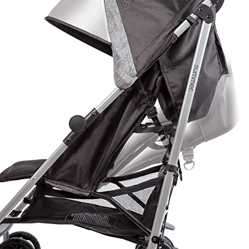 LIGHTWEIGHT – A lightweight stroller makes any outing a little easier! The Summer 3Dlite ST Convenience Stroller has a durable steel frame that weighs just 15 pounds and has a large seat area, plus anti-shock front wheels and lockable rear wheels. FOR TRAVEL AND EVERYDAY – Whether you’re traveling or just on the go running everyday errands, having a lightweight, compact stroller is a must! With this one easy to use stroller, you’ll have both an everyday and travel stroller option. MULTI-POSITION RECLINE – Keep your little one comfortable and safe at all times with the multi-position recline and 5 point safety harness. Maximum weight and height of child for this toddler stroller: 50 pounds and 43 inches. COMPACT FOLD – The easy compact fold and auto lock make it simple to store this lightweight umbrella stroller and bring it with you to go! Plus, the adjustable and removable canopy with flip out sun visor is perfect for sunny days. EXTRA STORAGE – With plenty of storage in this stroller, you won’t have to leave anything at home. It includes an extra-large storage basket, rear storage pocket and cup holder. Don’t overload storage basket: maximum of 10 lbs.