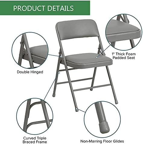 Space-Saving Elegance: Our 2-pack folding chairs blend a steel frame with fabric/vinyl seats, providing a stylish, space-saving solution for parties or gatherings. The foldable design ensures easy storage, making them ideal for any event. Comfortable Seating: Featuring foam-padded seats, these folding chairs prioritize comfort without compromising durability. Perfect for extended use, whether you're hosting a party or setting up a temporary office space. Versatile Indoor Solution: Beyond parties, these foldable chairs seamlessly transition into indoor spaces, offering a chic seating option for offices, conferences, or impromptu workstations. The sleek metal design adds a touch of sophistication to any setting. Affordable Quality: The "Amazing for Less" pack strikes the perfect balance between affordability and quality. These cheap chairs redefine budget-friendly seating, ensuring you get sturdy, stylish, and comfortable folding chairs without breaking the bank. Business-Ready Seating: Designed to meet the demands of professional environments, these folding chairs are perfect for boardrooms, conference halls, or impromptu office setups. Elevate your workspace with the sleek metal design, ensuring a touch of sophistication in every business setting. No Assembly Required PRODUCT MEASUREMENT: Overall Size: 18.5""W x 19""D x 30""H Package Includes: 2 x Chairs