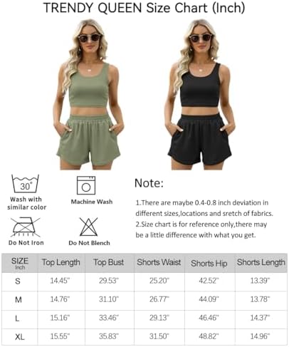 ★Material:The two piece pajama sets for women is made of 97%Polyester and 3%Spandex, soft and lightweight polyester material, which is breathable and skin friendly to makes you feel cool,cozy and comfortable. ★Design:Cut casual sleepwear for women, short sets 2 piece outfits, sleeveless, square neck,solid color, relaxed fit, tank crop top,two pieces workout sets,preppy clothes ★Occasion: This trendy womens two piece summer casual outfits cute matching sets suitable for vacation,beach,casual,festival,airport,daily wear,travel,,outdoor activity, shopping,office, party, school, running,club,sport,gym,dancing,hiking,biking,yoga,spring,summer and fall.It's also a good gift to your friend or family. ★Match:matching high waisted loose athletic shorts with two sides pockets,standard size,suit for summer vacation. ★Ideas: This two-piece matching tracksuits is suitable for gym, hiking, jogging, workout, biker, golf, athletic,etc. Let you shine in any occasion. #2,858 in Clothing, Shoes & Jewelry ( ) #1,218 in