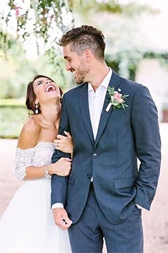 Wangyue Men's Linen Suit 2 Piece Causal Summer Suits Slim Fit Wedding Suit Groomsmen Prom Tuxedo Suits