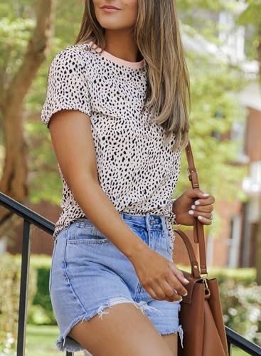 EVALESS Womens Casual Polka Dot Tops Crewneck Short Sleeve T Shirts Fashion 2024 Spring Summer Loose Fit Shirts