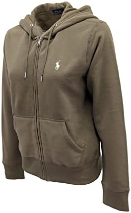POLO RALPH LAUREN Womens Full Zip Hoodie (Large, Olive Green (Cream Pony))