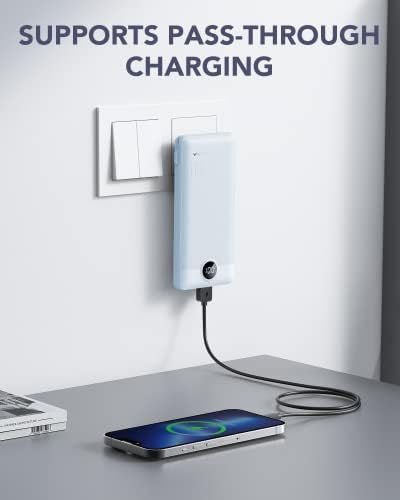 [Portable Charger With Built-in Cables & AC Wall Plug] Not only it has a built-in Micro cable, USB C cable, and other charging cable for iPhone, but also is equipped with a USB port,and USB C port. Also, Portable phone charger is built-in wall plug that charges the power bank itself directly from the wall outlet. [Slim & Compact Design] Product dimension is 5.9 x 2.8 x 0.7 in,weighing 8 Oz. Compact design is more convenient for us to carry on the go, and does not add any weight. [Smart Digital LED Display] You can know the remaining power at a glance via LED Display. Also, the 3D texture on the surface provides you with a better 3D touch and grip to prevent the power bank and phone from slipping off. [Wide Compatibility] Using the built-in charging cables to charge, the portable battery charger is compatible with iPhone, Android devices, and USB-C most mobile phones and smart devices etc. This external battery power bank can meet most of the charging needs of daily life. [PRODUCT PACKAGE] 1x Power Bank, 1x User Manual.