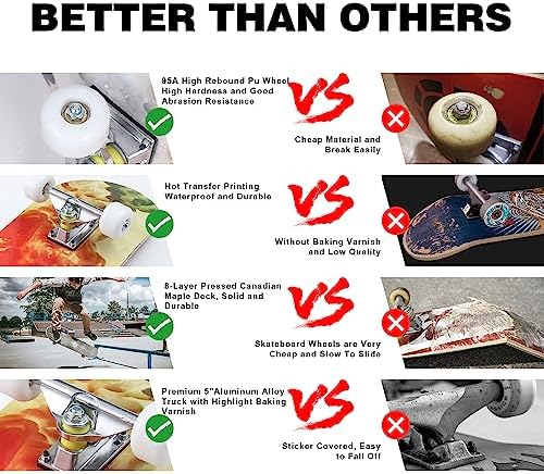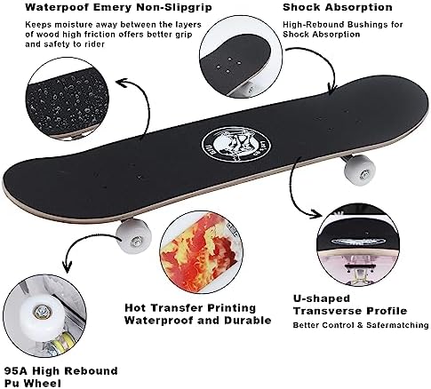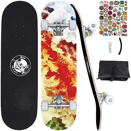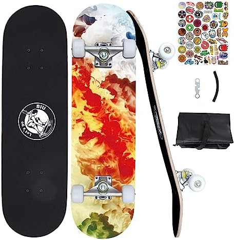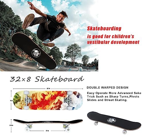 Skateboards for Beginners, 32"X8" Inch Standard Complete Skateboard for Adults Youths Teens Kids Girls Boys 8 Layer Canadian Maple Double Kick Concave with Skate Tool