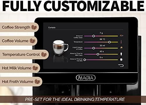 Zulay Magia Super Automatic Coffee Espresso Machine - Durable Automatic Espresso Machine With Grinder - Espresso Coffee Maker With Easy To Use 7” Touch Screen, 20 Coffee Recipes, 10 User Profiles