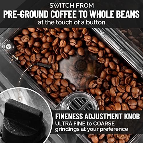 YOUR PERSONAL PROFESSIONAL BARISTA: Save yourself a lot of money by having your favorite Coffee done with an easy push of a button every day at home. This One-of-a-Kind Espresso Maker is designed with a range of 20 different Coffee Recipes, serving you with a glass of perfection every time! Easily choose from Lattes, Cappuccinos, Americanos, Espressos, Flat Whites, Macchiatos and many, many more! All exactly the way you want it! STRESS-FREE, HASSLE-FREE OPERATION: The Magia Super Automatic Espresso Machine is specially designed with a wide array of amazing functions and features, such as a 19-bar Italian Pump, Wide 7-inch High Resolution Touchscreen, 8.8oz Bean Storage Container, 1800ml water capacity tank, cup warmer plate and 18 preloaded special coffee recipes. A cup of delicious coffee has never been THIS simple! FULLY PERSONALIZED AND CUSTOMIZABLE: Built with the most sophisticated, revolutionary brewing technology money can buy. The high-tech software allows you to customize the amount of coffee, temperature, and hot milk foam settings laid out in a user-friendly interface and large 7-inch screen perfect for both beginners and experts. You can even save these settings in 10 personalized individual profiles for future use. Make your perfect coffee, your way, every time. BREW IT YOUR WAY: Choose how you want your coffee, strong or light! Put the coffee beans in the container and use the adjustment knob to set the conical burr grinder; turn the knob counterclockwise for fine powder and clockwise for coarse coffee grains. Set the coffee spout to fit a larger or smaller cup and use the single touch operation to brew two cups of coffee in one go. SUPER EASY-TO-CLEAN: The automatic espresso machine comes with conveniently designed with an auto-clean feature. This premium feature is designed to get rid of any residue from the brewer-unit or from the milk foam system, after every use or when the coffee machine turns off, turns on or is idle. Disassemble the drip tray, water tank and coffee waste bin and put them in the dishwasher or rinse them under running water every week. HASSLE-FREE, ZULAY SATISFACTION: We love and take pride in our Coffee Machine. If there are ever any issues, just contact us, and we will help you every step of the way. Chances are that this Coffee Maker will change your life. PROP 65 WARNING: This product may contain chemical(s) known to the State of California to cause cancer, birth defects and/or other reproductive harm.