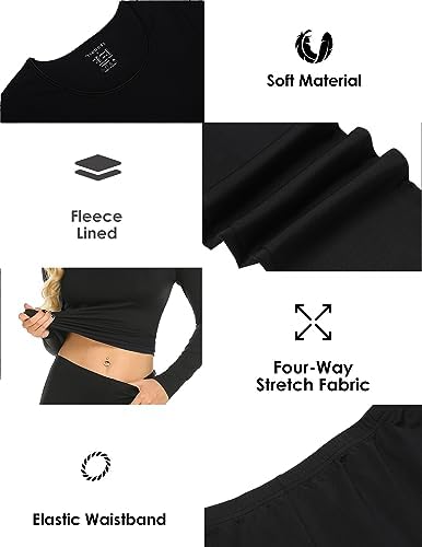 Ekouaer Women's Thermal Underwear Sets Micro Fleece Lined Long Johns Base Layer Thermals 2 Pieces Set S-XXL