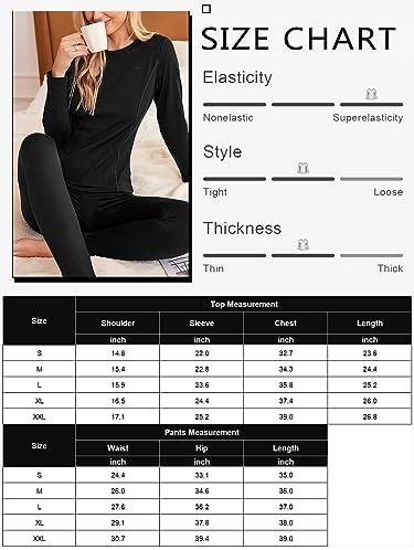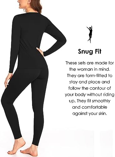 Ultra Soft Thermal Underwear - Features with smooth outer layer and micro fleece-lined inner layer that provides a warm and comfortable. Women thermal sets can keep you warm from top to bottom. They promote thermal insulation by trapping your body heat and keep you consistently warm, no matter if you are indoors or outdoors. Lightweight Fleece Lined 2 Piece Set - High quality micro fleece lined, moisture-wicking and breathable. Ladies long johns keep your skin snug, warm, and dry all day, making them an ideal choice to wear for going out as a base layer, also great to wear as warm pajama set at home. Cozy & Stretch Thermal Underwear Sets - This thermal base layer provides 4-way stretch and elastic waistband, firm sewing allowing you move without restrictions. Fit snug with great stretch, the feminine cut of this ladies long underwear will bring out the best in every part of your body. Stylish Versatile Thermal Clothing - This long johns thermal set is basic and simple that can match with any fashion items, easy to pair with jacket, suitable for skiing, hiking, camping, snowboarding or daily wearing. It's a essential item for every women or girls' wardrobe, also the perfect Christmas, Birthday or Mother's Day gift for your mom, wife, daughter, or friend. Warm Tips - Please pay attention to the SIZE INFORMATION on the product page and the SIZE CHART of SELLER in product images as well as our customers' feedback to ensure accurate fitting. #405,787 in Clothing, Shoes & Jewelry ( ) #84 in