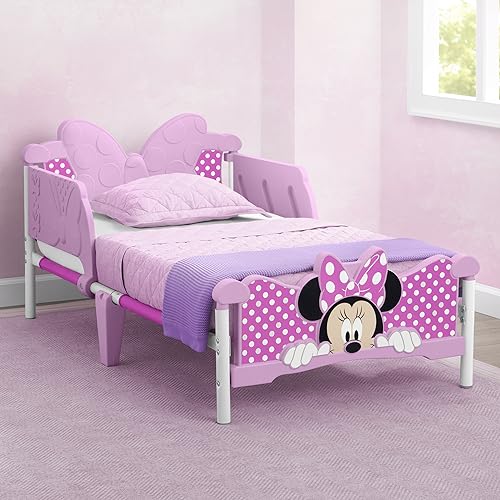AGE RANGE: Recommended for ages 15 months+ | Holds up to 50 lbs. FUN CHARACTER DESIGN: Colorful decals and 3D accents at the footboard, headboard and toddler rails makes this a fun bed for your little one KEEPS KIDS SAFE: Bed features two attached guardrails for your child’s safety | JPMA certified to meet or exceed all safety standards set by the CPSC & ASTM DURABLE CONSTRUCTION: Sturdy frame ensures long-lasting use SIZE: 30.25"W x 53.5"D x 23.7"H | Fits standard size crib/toddler mattress (sold separately)