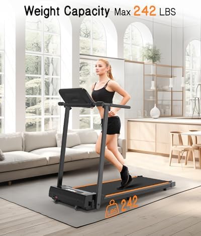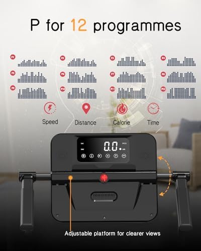 Innovative Walking Treadmill for Home: 2024 Updated under desk treadmill that arrives fully assembled and ready to exercise. TODO folding treadmill has 12 different HIIT running modes. With the help of these preset training plans, you can choose the best to suit your needs. You can also track your exercise data, such as speed, time, distance, and calories clearly with an adjustable LCD screen. Easy to fold for Space Save: Folding it in only two steps! The folding size is 48”x 22.5”x 5.4” (L x W x H). The compact design makes it easy to fit in your home or office and jump on for a quick workout. TODO folding treadmill is smaller & and more convenient and weighs only 51.24 lbs. Powerful and Ultra-quiet Makes Running Like Outdoors: 2.25 HP Motor provides speeds of 0.5-5 MPH which guarantees the stable operation of the machine with 242 LBS weight capacity. The motor runs quietly and will never disturb other people. Makes running like outdoors. Larger Running Area Everyone: 5-layer widened tread belt (15.3"x41") that allows you to walk, jog or run more freely. Not just an ordinary treadmill, but a treadmill for your pets, which means your beloved puppy can get fit on TODO folding treadmill too. 100% Satisfaction & Awesome Service: TODO is committed to providing every customer best possible experience and guaranteeing your satisfaction. Our team is ALWAYS ONLINE and ready to help you with any questions you may have.