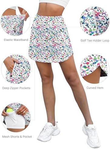 【Comfy Material】: LouKeith 16" outer layer skirts and inner shorts are lightweight, soft, non see-through, moisture wicking, quick dry, aim to keep you comfortable and cool all days. 【Bulit-in Shorts】: Tennis skirt with breathable mesh liner shorts provide extra perfect fit and support, stay in place and don’t ride up, allowing you to exercise more safely, freely and cozy. 【High Waist & Split Curved Hem】: The high elastic waist of golf skirt provide the perfect amount of coverage and compression to keep your tummy looking flatter. Chic slit curved hem design enhance range of motion while giving you fashion look and slimming fit. 【3 Pockets & Tee Holder Loop】: Mini skirt with 2 zipper pockets in skirts are secure store your essentials without falling out. And 1 side pocket in inner shorts for your ball and phone, freeing your hands during sports. The tee loop near the pocket is convenient for putting golf tee holder. 【Occasions】: The athletic skirt is ideal for golf, tennis, pickleball, workout, active, running, hiking, biking, yoga, volleyball, badminton, cheerleading, skater, training, walking, shopping, vacation, going out and trendy casual wear. #21,275 in Clothing, Shoes & Jewelry ( ) #49 in