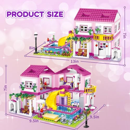Pink Girls Summer Villa Friends Building Set Compatible with Lego Friends Construction Educational Toy for Kids Age 6-12 and Up 1523 PCS