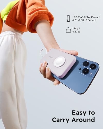 ✔️【Special Designed for Apple Family】: Built-in cable for iPhone, a magnetic module for Apple Watch, and a Type C port output for iPhone 15 series, the portable charger will power your iPhone, Apple Watch, and Airpods simultaneously. ✔️【PD 20W Fast Charging】: The built-in cable supports PD 20W fast charging, providing your iPhone with 60% juice in 30 minutes, 3 times faster than normal 5V 1A charger. ✔️【Compatibility】: This portable battery charger is widely compatible with iPhone 15/14/13/12/Pro Max series, Apple Watch 9/8/7/6/5/4/3/2/1/SE/Ultra, as well as other Type C Android devices or tablets. ✔️【5000mAh Battery with Slim Body】: With a slim size of 4*2.4*0.6 inches, the external battery is a perfect travel accessory. 5000mAh capacity is emergenced for daily used, providing 0.7 charges for iPhone15/14, 7 charges for Apple Watch Ultra, 0.52 Charges for iPad mini 6, 40 charges for Airpods, 0.65 charges for Samsung S23. ✔️【What You will Get】: A VEGER 5000mAh portable charger with built in cable, 1x user manual, 1x USB C cable, our worry-free 12 month guarantee and 7 Day/24H friendly customer service. If you have any problems, please contact us and we will solve it within 12 hours. ✔️【Friendly Reminder】When charging your Apple Watch, kindly press the button and wait 5-16 seconds for the wireless charging to activate.