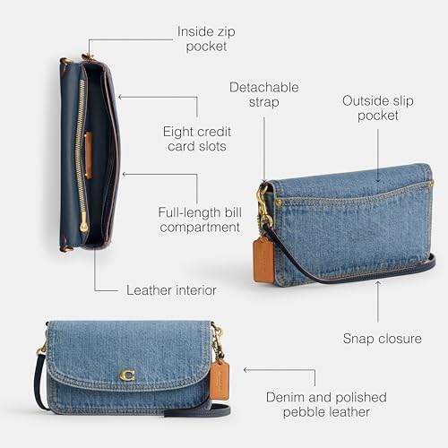 Editors Notes: Easy, compact and practical—this grab-and-go denim designer purse is detailed with our signature hardware Denim & Leather: The perfect pair. Crafted with denim and refined leather - for an iconic denim crossbody bag for women Style Two Ways: A detachable strap allows you to wear this designer handbag for women 3 ways: on the shoulder, crossbody or carried as a clutch It's All in the Details: 8 credit card slots, Full-length bill compartment, Inside zip pocket, Snap closure, Outside slip pocket. Detachable strap with 21 1/2" drop. 8" (L) x 4 3/4" (H) x 1 1/2" (W) This is COACH: Having the courage to be real since 1941. COACH is the Original American House of Leather - with a legacy of craft and a community that champions the courage to live authentically #68,557 in Clothing, Shoes & Jewelry ( ) #390 in