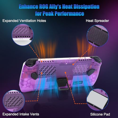 Cooling Modcase for ROG Ally, ROG Ally Back Plate Accessories Heat Management Shell Case Compatible with ASUS ROG Ally, Easy Installation with Foldable Kickstand, and Custom Nameplate (Purple)