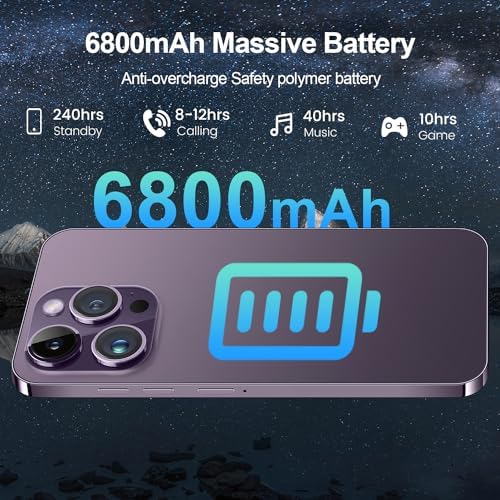 【6800mAh large battery】 The cell phone is equipped with a large 6800mAh battery, saying goodbye to battery anxiety. When you are still worrying about batteries, please choose it! Trust me, you don't need to charge it all the time, because its battery is very big enough for you to use, and it is enough to meet your daily needs! you can immerse yourself in everything this phone has to offer without constantly worrying about charging. Whether you're on a long road trip, exploring new places, or just making it through a busy day at work, this powerful battery ensures your smartphone stays charged when you need it most. 【6.8 HD+ for Android 13.0】Please note that this is an Android phone with a large perforated screen, 2.5D curved edges, and a premium heat bending glass back cover. 5-point capacitive touchscreen. Magnesium aluminum body. Facial recognition, on-screen fingerprint unlock to protect your privacy. comfortable to hold. Adopts facial recognition and on-screen fingerprint unlocking to better protect your privacy. 【Excellent camera features】 Unlock your photography potential with our smartphone’s powerful 48MP+108MP dual camera setup. helping you capture and record the most exciting memorable moments with high-quality images or videos, perfect for indoors outdoors. From stunning landscapes to intimate portraits, this camera system allows you to be creative and record life's precious moments with extraordinary clarity. Say goodbye to blurry, low-quality photos - with this smart phone you can capture and share high-resolution images that are truly eye-catching. Let your photography skills shine with the exceptional features of our smartphone dual camera setup. 【Global band and dual SIM 5G mobile phone】This machine adopts 5G smartphone 5G smartphone has faster transmission speed, short time delay, high positioning accuracy, wide link for customers to feel a more advanced experience. experience. 【Cell Phones+Giveaways】You'll receive not only the A15ProMax phone but also a box, a user manual, a charger adapter, a USB C data cable, a pair of headphones, a protective screen and a case