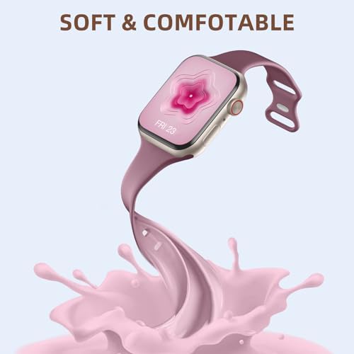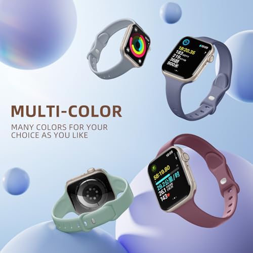 ✅【Compatible Models】These silicone Sim Thin bands are compatible with apple watch bands for women, including replacement for iWatch Ultra2, Ultra, iWatch SE, Series 9, Series 8, Series 7, Series 6, Series 5, Series 4, Series 3, Series 2, and Series 1. (Note: Watch not included). Please verify your watch model before ordering. ✅High quality material】 The sweat resistant and waterproof iwatch Bands for women is made of pure silicone and flexible elastomer and soft silicone material is used on the wrist to improve airflow and comfort, providing you with a comfortable wearing experience. ✅【Elegant and Fashionable Slim Thin Design 】With a 0.55 inch(14mm) width, the unique narrow thin slim apple watch bands for women is smaller,more flexible,soft and lightweight.The silicone slim thin band personalize you a more elegant feminine. Breathable holes are easier to adjust the length.Easy and direct installation, one button removal with watch lugs on both ends.swomen ✅【Great Gifts】Multiple colors for your choice, a variety of colors for iWatch bands for women make your iwatch look unique and match your daily life and mood.Two selected sizes for your choice .Size:38mm/40mm/41mm for 5.1"-7.1" (130mm-180mm) wrist; Size:42mm/44mm/45mm/49mm for 5.9"-7.9" (150mm-200mm) wrist.A good choice for daily wear and exercise. ✅【Friendly Service】Your wonderful shopping experience is the most important to us. If you have any question for apple watch band, please let us know, we will solve it for you within 24 hours #2,021 in Cell Phones & Accessories ( ) #189 in