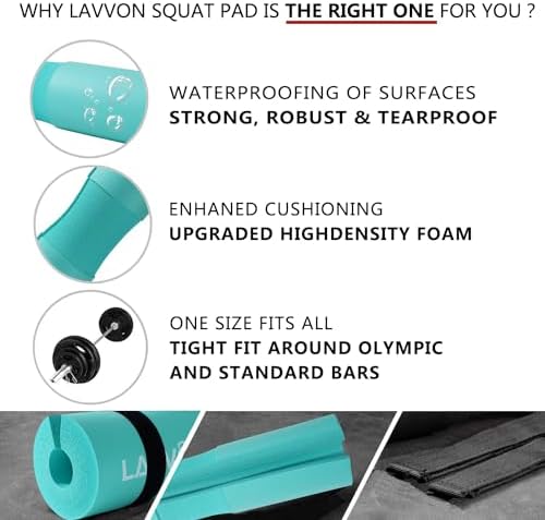 Squat Pad - Foam Barbell Pad for Squats Cushion, Lunges & Bar Padding for Hip Thrusts - Standard Olympic Weight Bar Pad - Provides Cushion to Neck and Shoulders While Training
