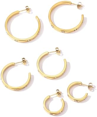 This love earring set includes 3 pairs of hoops with an outer diameter of 14mm, 22mm, and 28mm. Each pair is 2mm thick. These hoop earrings can be worn alone or stacked together making it perfect for everyday wear. The gold earrings are made for 316L stainless steel for long life.The sparkle Cubic Zirconia stones have been cleverly and perfectly set on the earrings. Real 18K Gold Plating on these earrings will ensure a very long lasting brilliant finish that is nickel free, lead free and hypoallergenic. Perfect gifts for celebrating the special woman in your life! Great as birthday gifts for women and girls, stocking stuffer Christmas gifts for family or best friends. 3 Months Money-back and 100% satisfaction guarantee. If you have any questions or are not satisfied with our products, please contact us any time. #318,952 in Clothing, Shoes & Jewelry ( ) #2,026 in