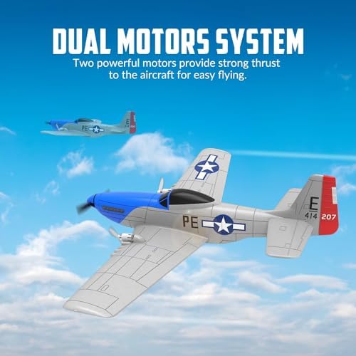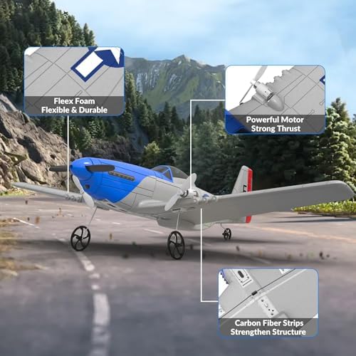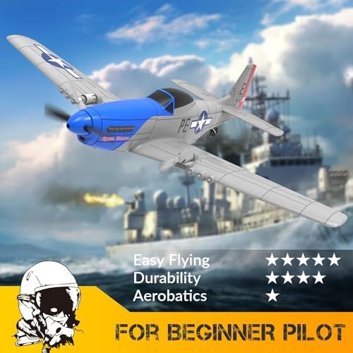 VOLANTEXRC RC Plane P51D Mustang RTF for Beginners, 2.4Ghz 2CH Remote Control Airplane Easy to Fly with Gyro Stabilization, Outdoor Hobby WWII Toy Gift for Kids & Adults (Blue)